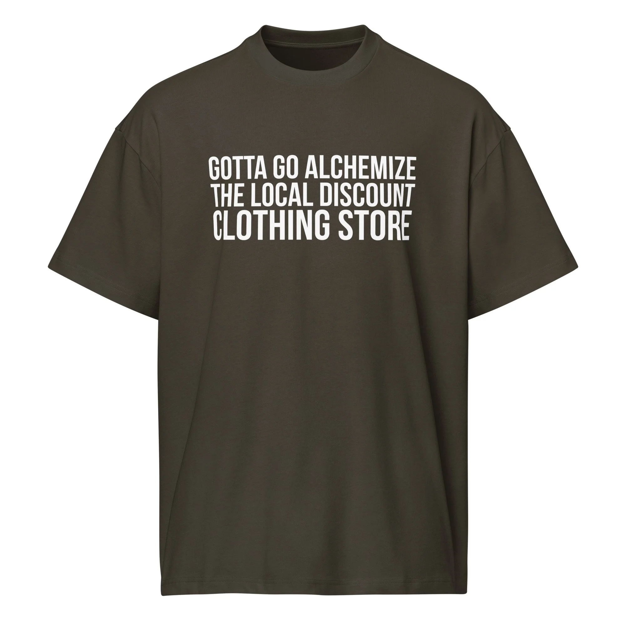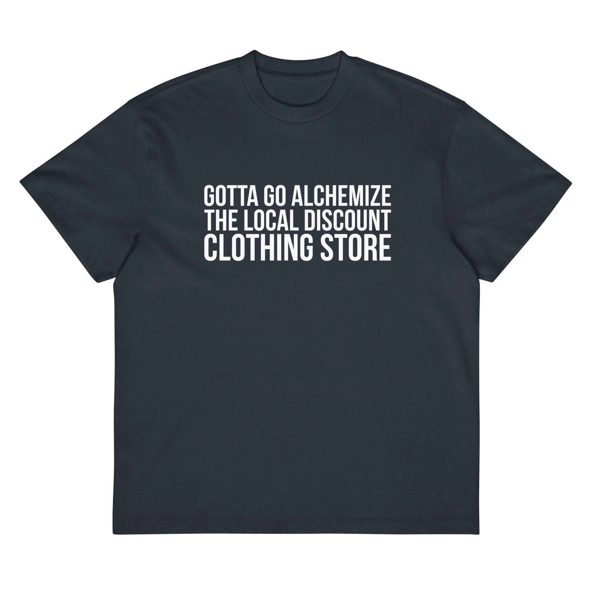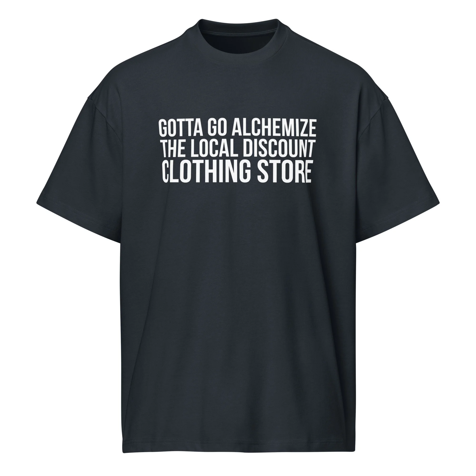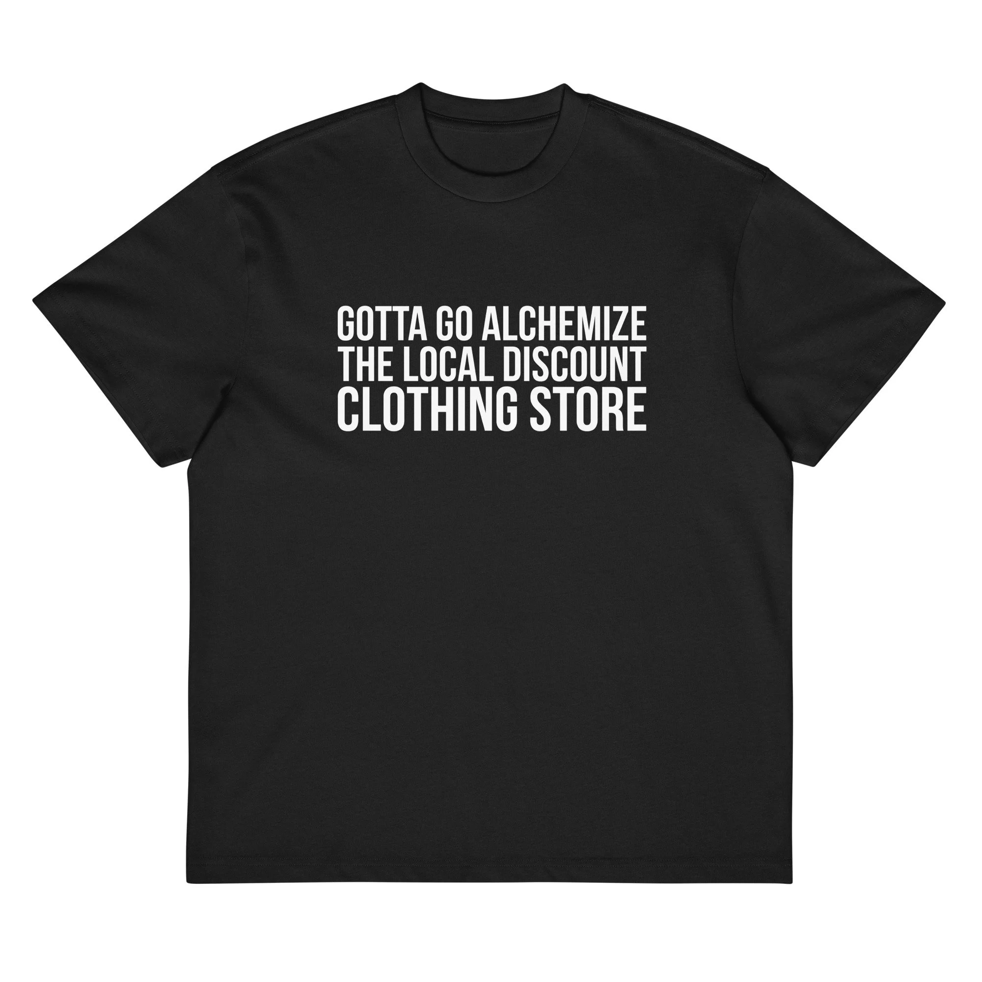 "Gotta Go Alchemize The Local Discount Clothing Store" Men's Oversized Boxy Tee