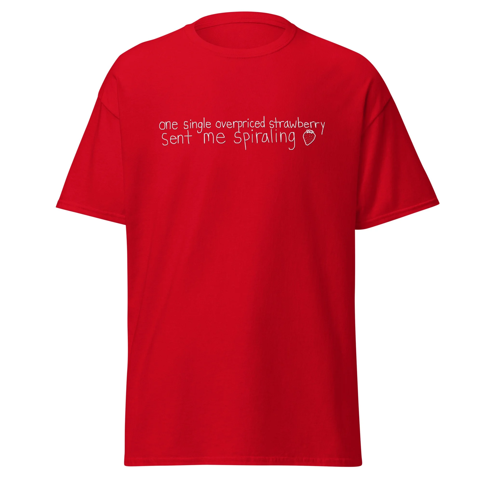 "One Single Overpriced Strawberry Sent Me Spiraling" Unisex Reg Fit Tee